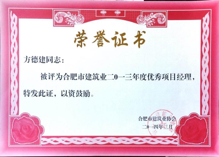 >2013年度优秀项目经理方德建