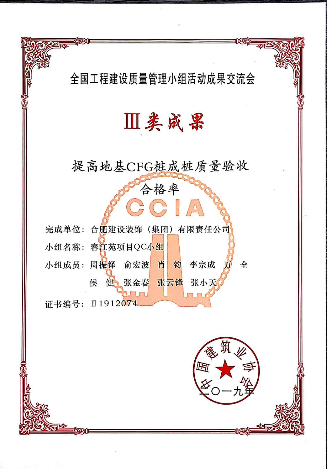 >春江苑2019年3类结果,中国建筑协会
