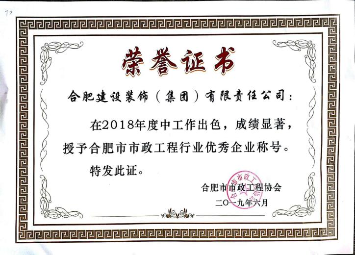 >2018年度合肥市市政工程行业优秀企业