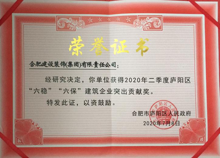 2020年二季度庐阳区六稳六保建筑业突出孝敬奖