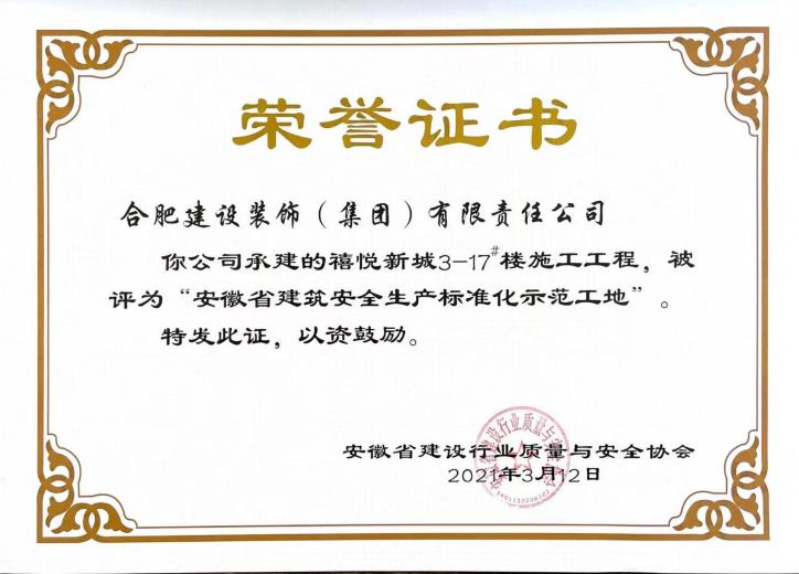 >禧悦新城3-17#楼施工工程——安徽九游老哥俱乐部筑宁静生产标准化示范工地