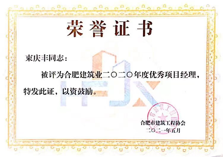 >2020年合肥建筑业企业优秀项目经理--束庆丰