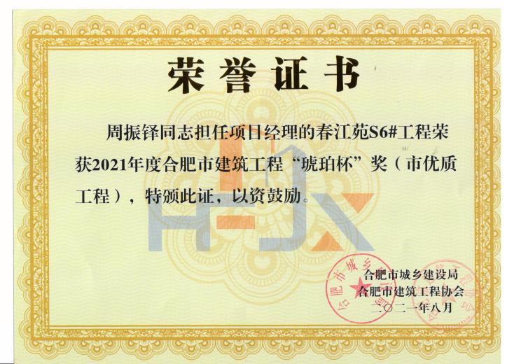 >周振铎-春江苑S6#--2021年度合肥市建筑工程“琥珀杯”奖(市优质工程)