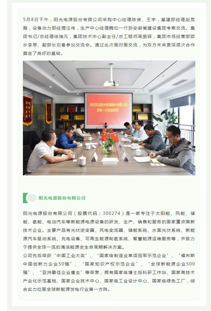 阳光电源股份有限公司到集团考察交流
