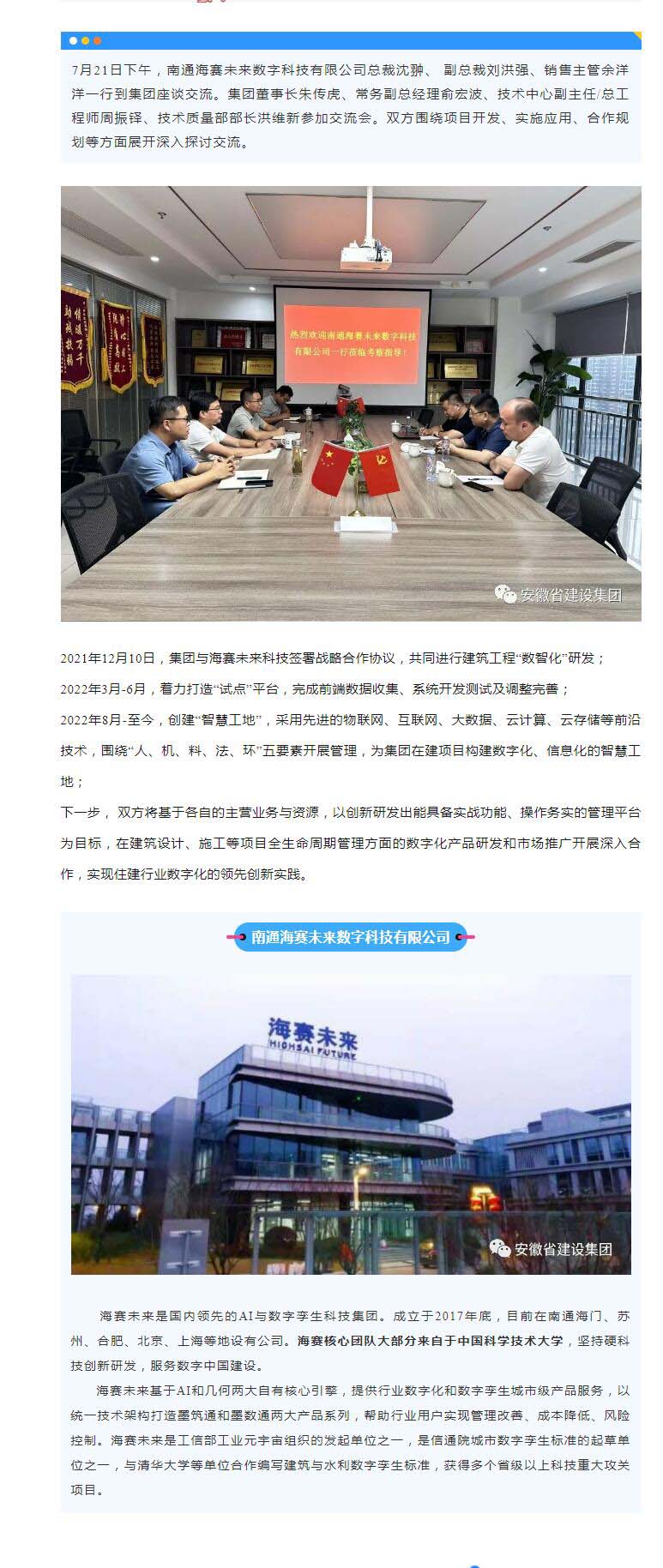 >南通海赛未来数字科技有限公司到集团座谈交流