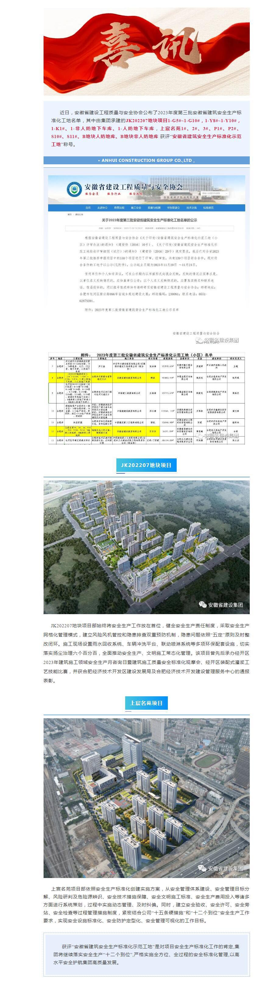 集团再添两个“安徽九游老哥俱乐部筑宁静生产标准化示范工地”