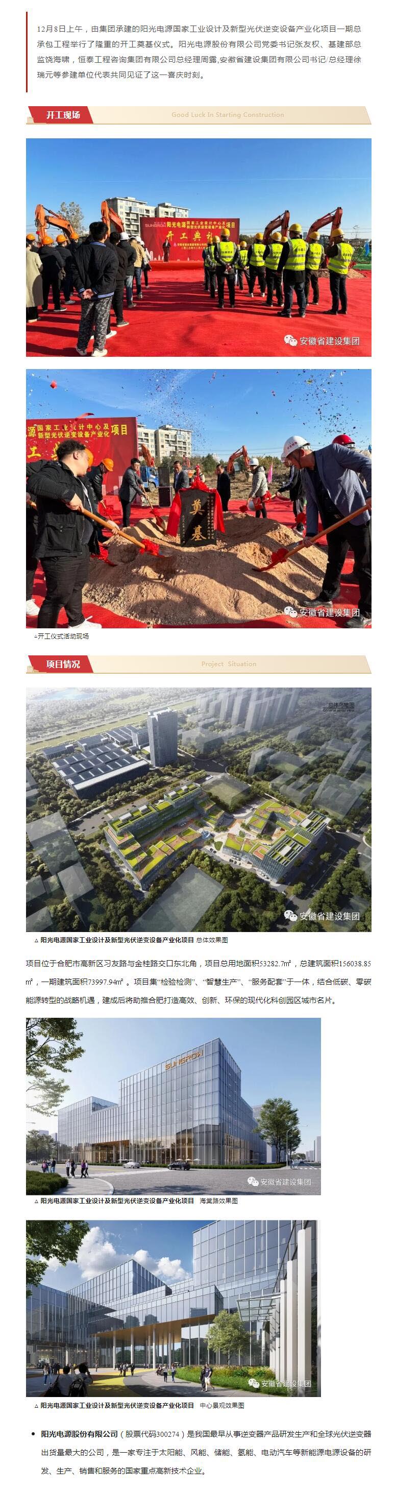 阳光电源国家工业设计及新型光伏逆变设备工业化项目顺利开工